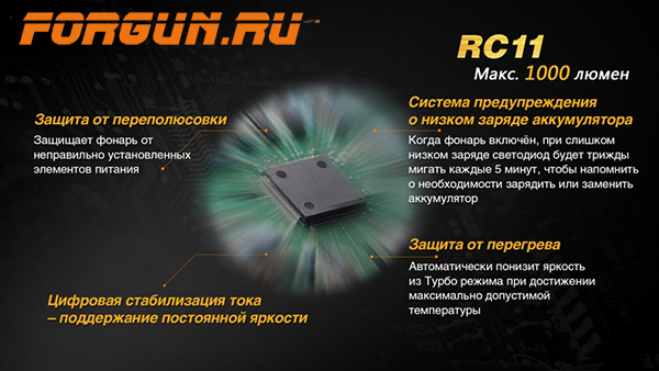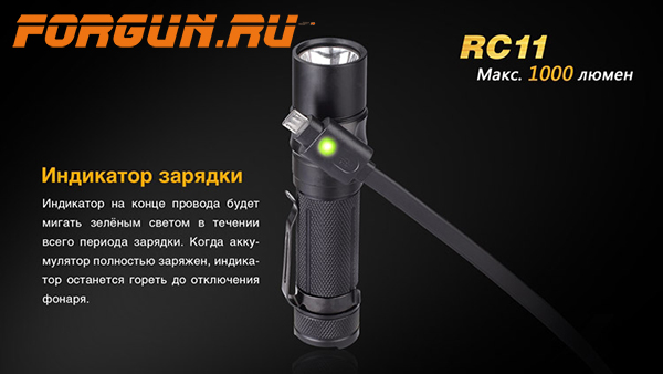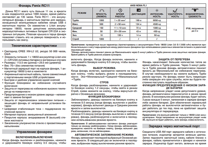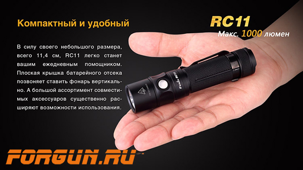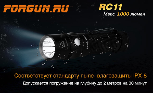 Fenix RC11 обладает длиной 11 см, но при этом яркость его достигает поразительной величины 1000 люмен, а максимальная длительность работы - 135 часов.