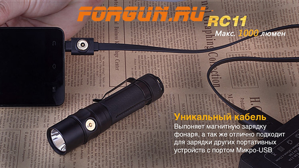 Это второй фонарь в аккумуляторной линейке RC с инновационным магнитным портом для зарядки, который имеет второй зарядный микро USB порт.