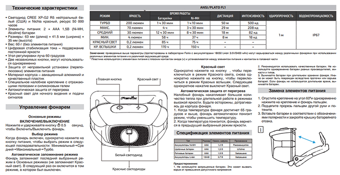 Для самых требовательных пользователей продукции Fenix, в наличии есть режимы «Вспышка», «Эко», «Турбо».