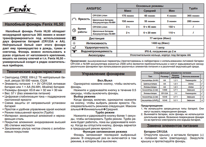 Fenix HL50 – прекрасный, надёжный, стильный спутник в повседневной жизни каждого человека.