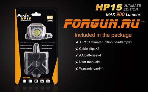 Фонарь налобный, 900 люменов Fenix HP15 UE
