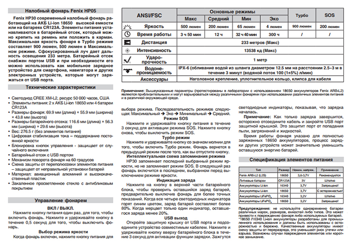 Максимальная яркость фонаря в Турбо режиме составляет 900 люмен, 500 люмен в Максимальном режиме.