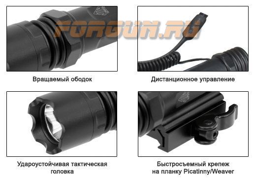 Фонарик UTG одинаково легко держится в левой и в правой руке или крепится на планку Picatinny/Weaver, после установки на адаптер (который прилагается в комплекте).