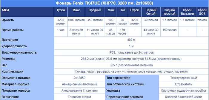 ОСОБЕННОСТИ Fenix TK47