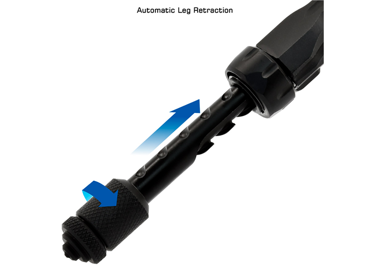 Независимая работа ног: Каждая нога сошек оснащена независимой пружиной и регулируется отдельно. Это позволяет компенсировать неровности рельефа (склоны, камни) для сохранения горизонтального положения оружия.